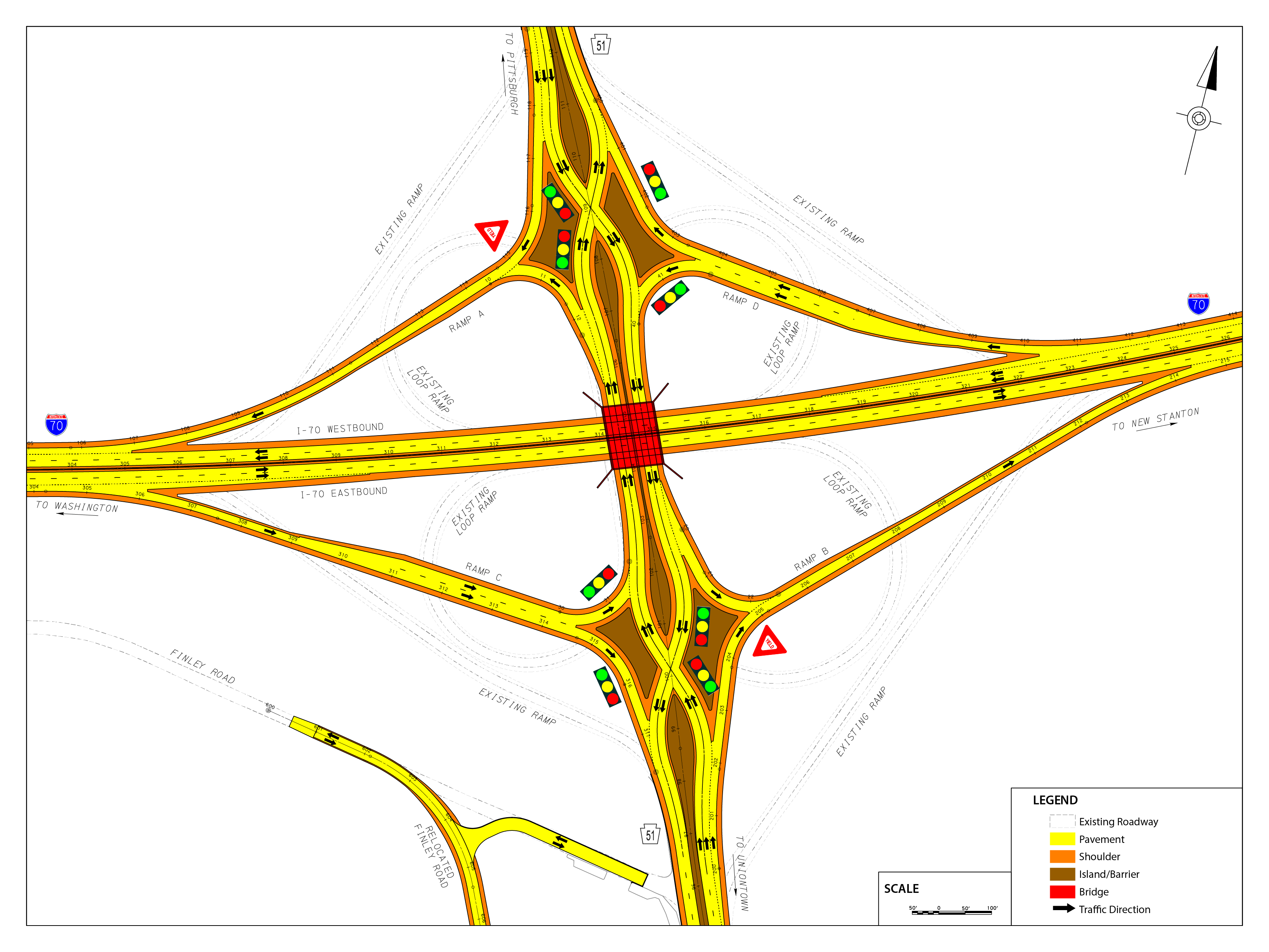 The lane restriction at the Route 51 Diverging Diamond Interchange was lifted in November 2025 and DDI movements are all in permanent configuration.