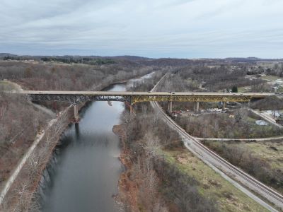 In Summer 2024, the Wheeling & Lake Erie railroad bridge was realigned and replaced