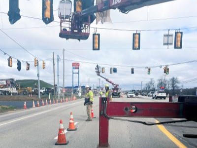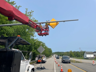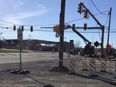 A permanent signal warning sign replaced the temporary signals along Route 51