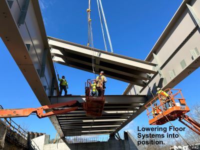 Wheeling & Lake Erie Railroad Bridge floor systems lowered into position