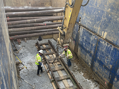 Setting tracks for tunnel boring pit