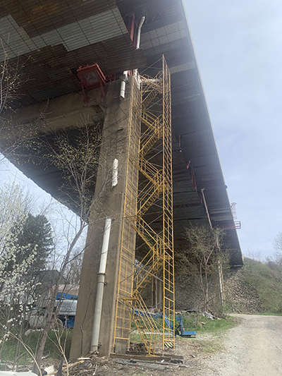 Access stairs for rehabilitation platform at Matthew Smelser Memorial Bridge